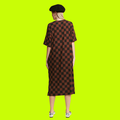 - Midi length dress with a straight silhouette