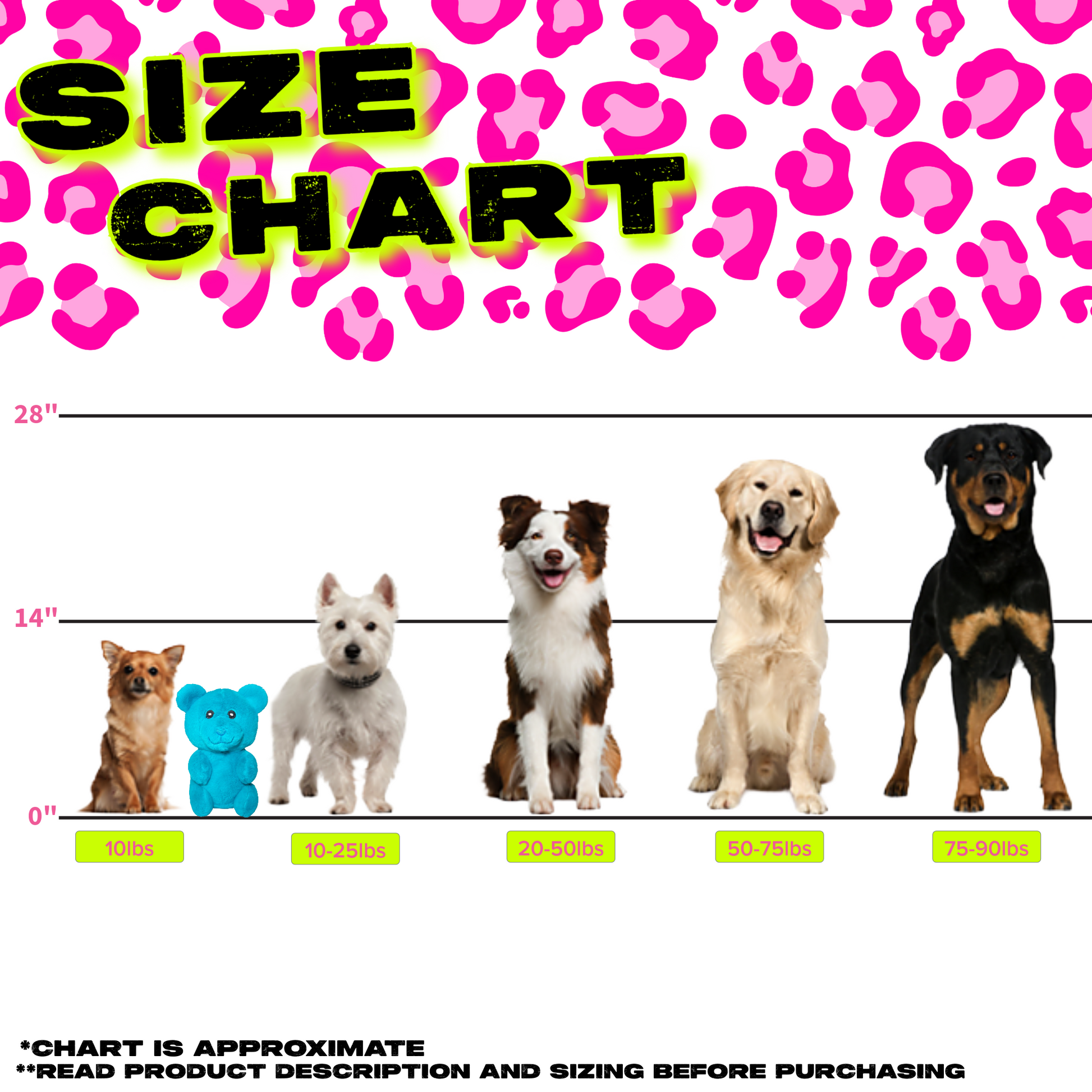 This soft and squishy NEON GUMMY BEAR DOG TOY is the cutest (and squeakiest) addition to your dogs extensive collection of toys. Each bear contains a squeaker and crinkle paper for the ultimate playtime. They may look sweet, but they’re made for chaos. Pure....adorable....neon chaos.