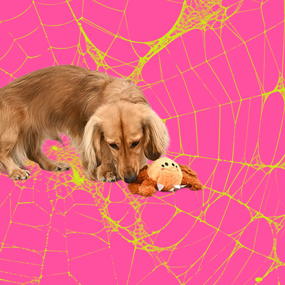 Your dog's new sweet spider friend. A multi-sensory adventure with a plush outside and bouncy, squeaky, spiky ball core. An ADORABLE little spider with sweet embroidered eyes, fuzzy legs, and a friendly face that says "I'm not scary, I'm SNUGGLY!"